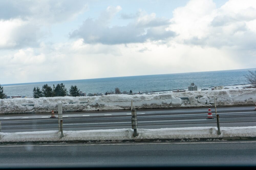 小樽行き高速バスの乗り場は赤レンガテラスの旧道庁側の道路に面したところにある。14:45発のに乗り込んだが始発バス停ではガラガラである。