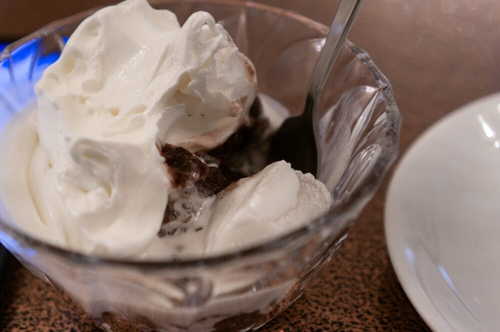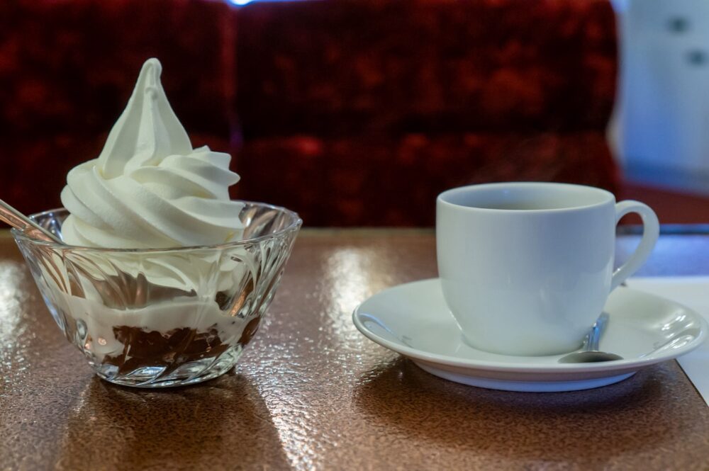 ケーキも食べたかったがメニューに人気No.1と書いてあるクリームぜんざいとブラックコーヒーを注文した。