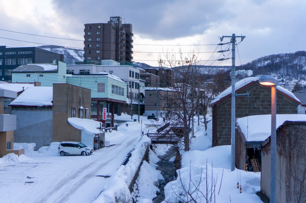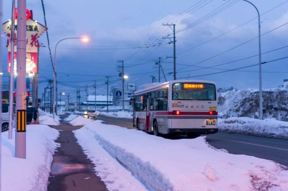 最近旅行行ってないからかこういう勘が鈍っている気がする。結局また30分待って次の高島3丁目行きバスに乗り込んだ。小樽市内でバスに乗るのは初めてだったのでとても新鮮だった。町名がバス停の名前になっていたりするのだが、どうしてこういう名前なのだろうか?なんて考えながら乗っているのが楽しい(色内とか錦町とか)。そんな事を考えながら10分程で目的地の手宮一丁目に到着。あたりは薄暗くなっている。