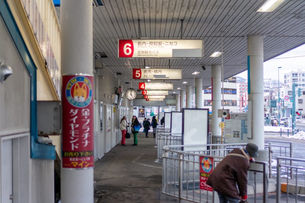 さてそろそろバスの時間が近づいてきたのでバス乗り場へ向かう。乗る予定のバスは”高島3丁目”行きである。乗り場は”小樽駅前”とあるので駅前にバスターミナルがあるからそこへ向かう。