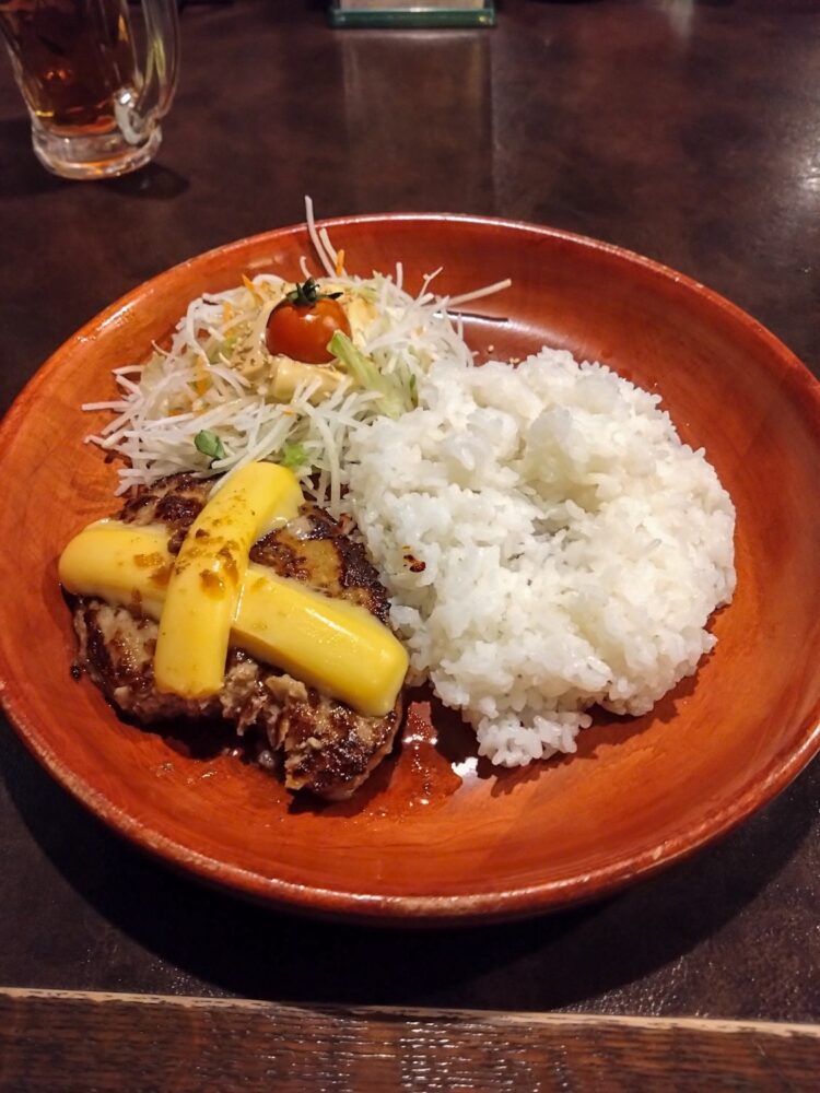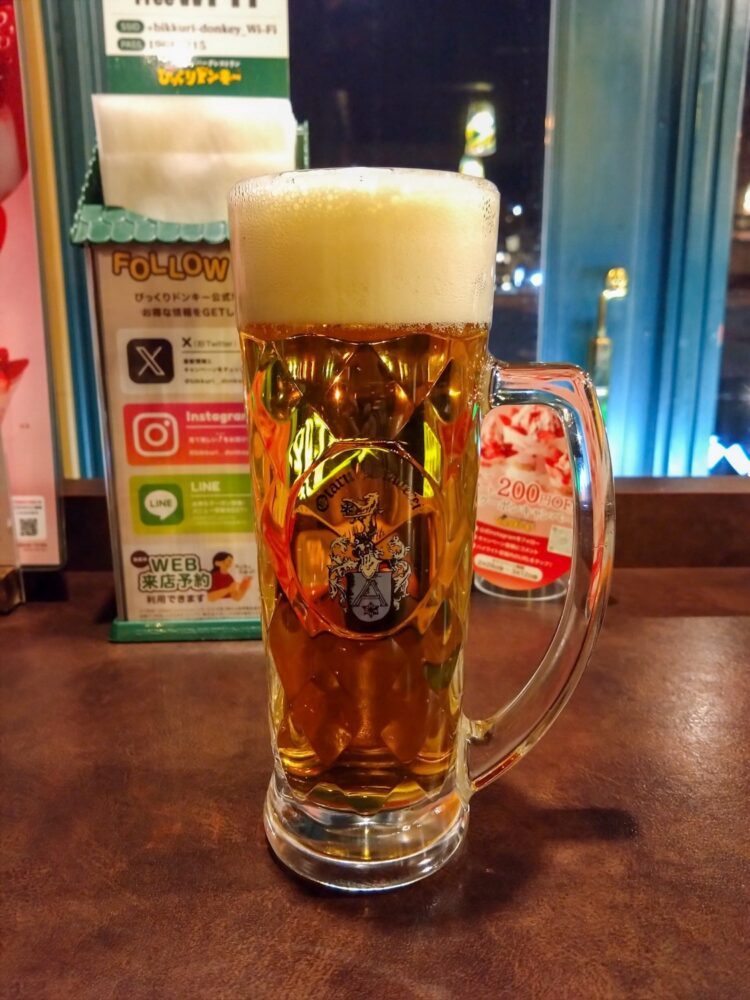 卒業旅行シーズンだからか若い世代の団体が多くてめちゃめちゃ混んでた。ウェイティングボードも未だ呼ばれていない名前で埋め尽くされておりこりゃダメだと悟った私は大人しく隣のびっくりドンキーでチーズバーグディッシュ150gライス普通盛とハウスビールを頼むのであった…(これはこれで美味しい!)。