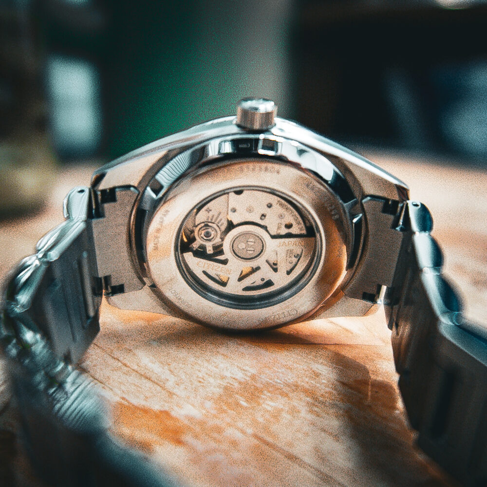 シースルーバックから覗くテンプの動きはまさに心臓部!時計が生き物のよう🥰