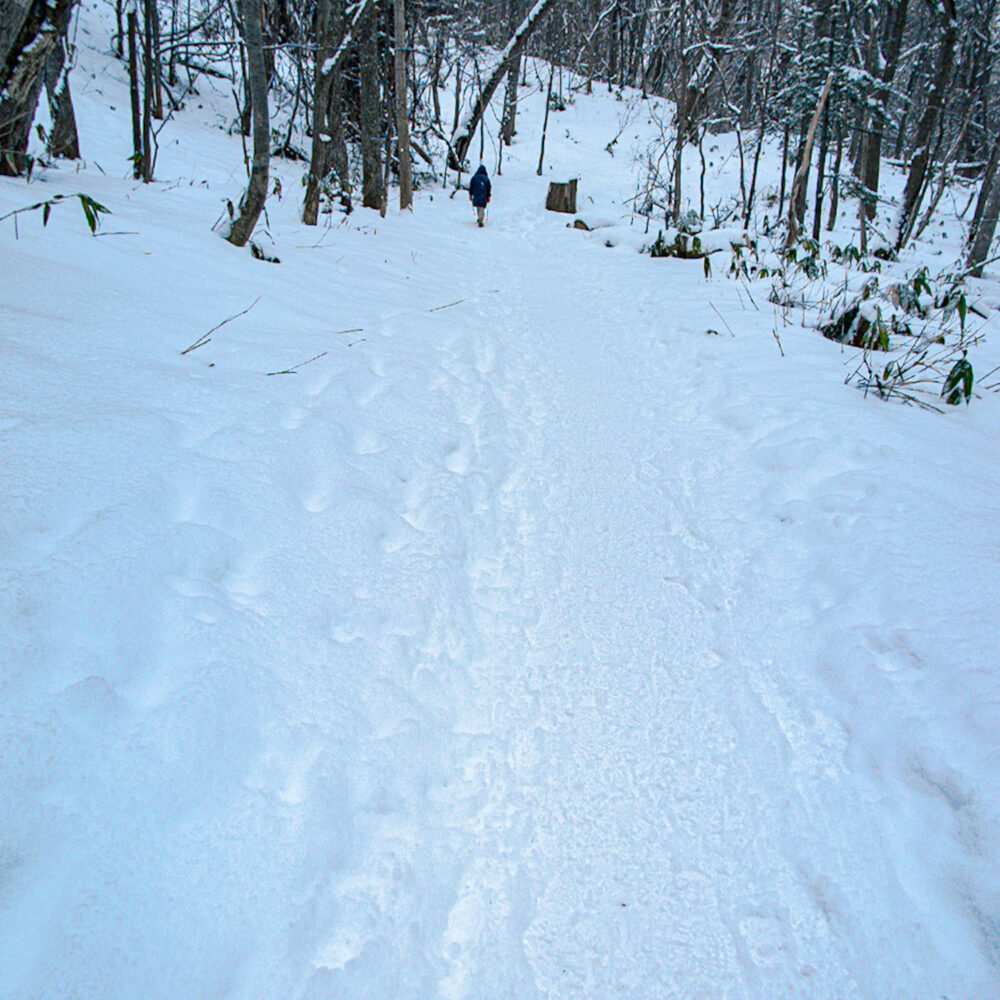 下りは40分ぐらいでした。登山道のギャップが雪で埋まってるから夏より歩きやすいかもしれない。