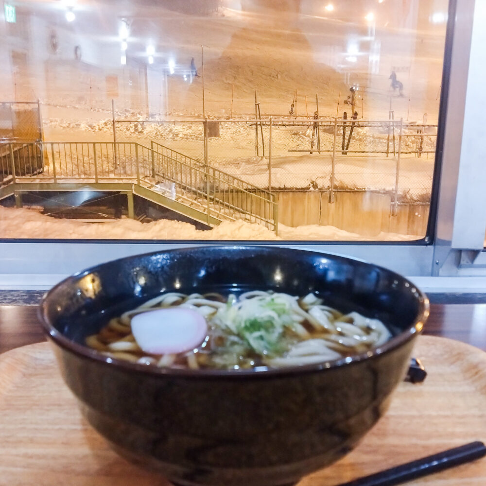 と、言うわけで再び藻岩山スキー場。今日の晩ご飯はかけうどんです!