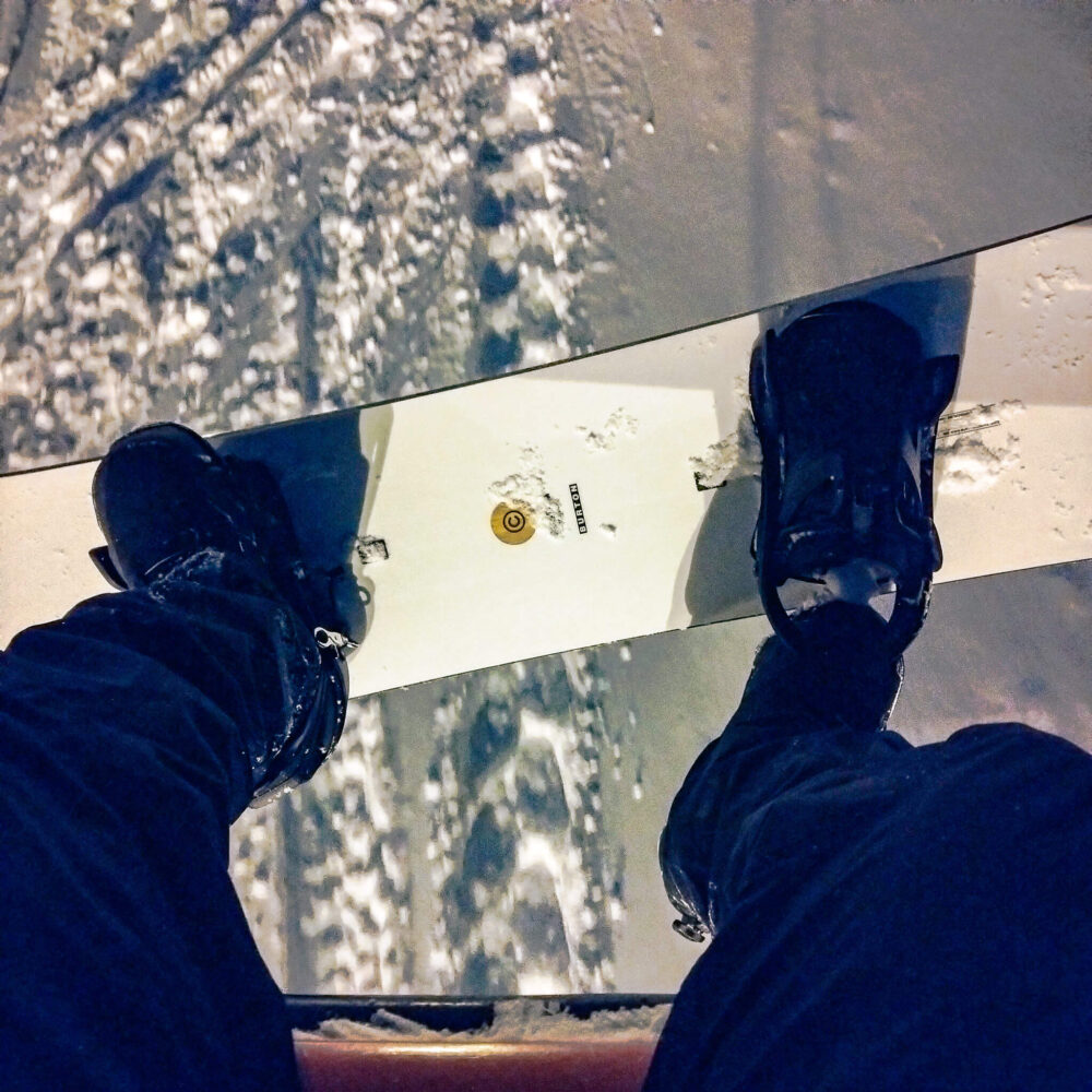 積雪が増えて気温も低いのでなかなか良い雪質です。先日南斜面がオープンしたので行こうとするも、連絡路の観光道路コースは途中斜度0になるのでボーダーにはちょっと辛いかも。こちら、ステップオンなのでまだマシだが…😐