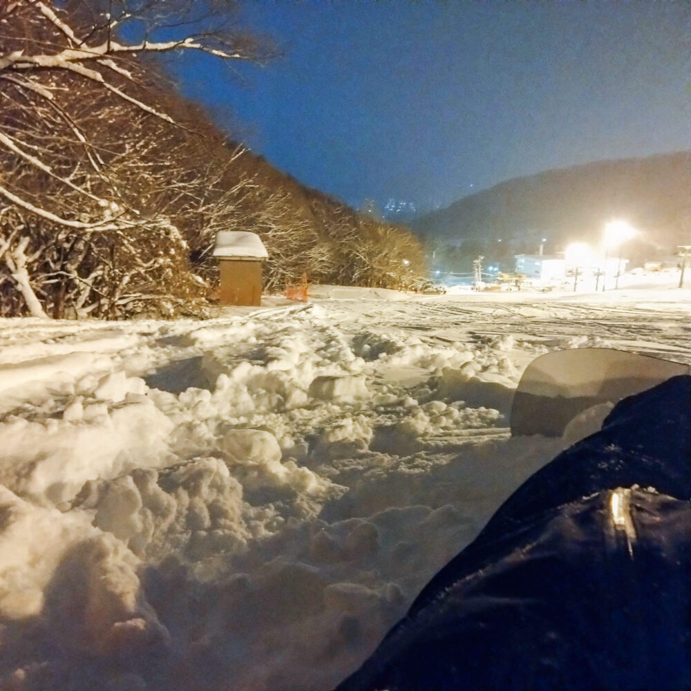 ところでクローズ間際にスマホを落としてしまった!滑走中、バックサイドターンの逆エッジでスッ転んだ際に胸ポケットから落ちてしまったらしい…(最後のリフト乗車中に気付いた)