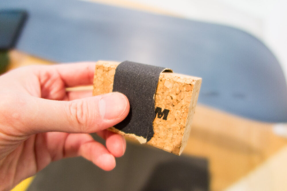 紙やすりをコルクに巻いて傷のところを削る。#240と#400を使う。