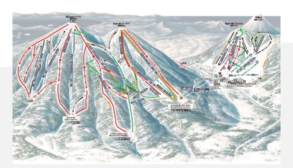 ルスツリゾートはウエスト、イースト、イゾラの3つの山から構成される巨大スキーリゾート。インスタでよく流れてきていた大蛇のようにSを描いたゴンドラ待ちの長蛇の列にはならないようで安心(1〜2月はヤバそう)。
